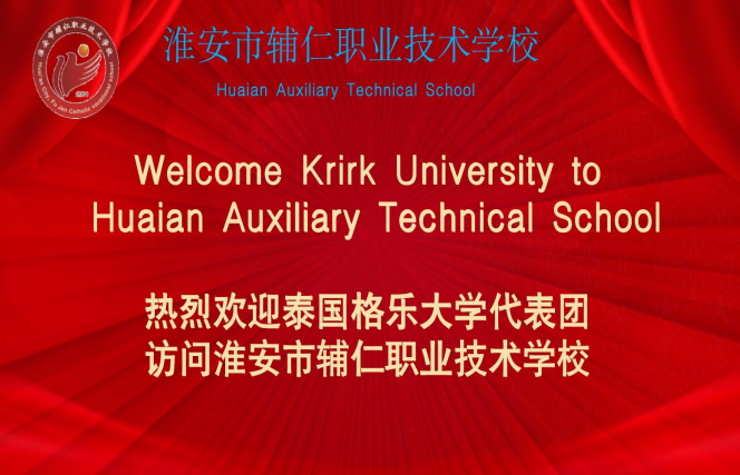 2023 年 01 月 06 日,淮安市辅仁职业技术学校—泰国格乐大学签署合作协议在云端举行。泰国格乐大学管理委员会委员、国际学院院务委员会主席李黎光,泰国格乐大学校长助理赵楠博士,泰国格乐大学院务委员会主席助理陈信润,研北文化东盟国际交流处副处长李大勇,研北文化东盟国际交流办主任、学生管理与签证处组长张守凤,淮安市辅仁职业技术学校党支部书记、校长唐郁荣,淮安市辅仁职业技术学校副校长孙本娟,淮安市辅仁职业技术学校副校长吴中亚及有关部门主要负责人参加活动。